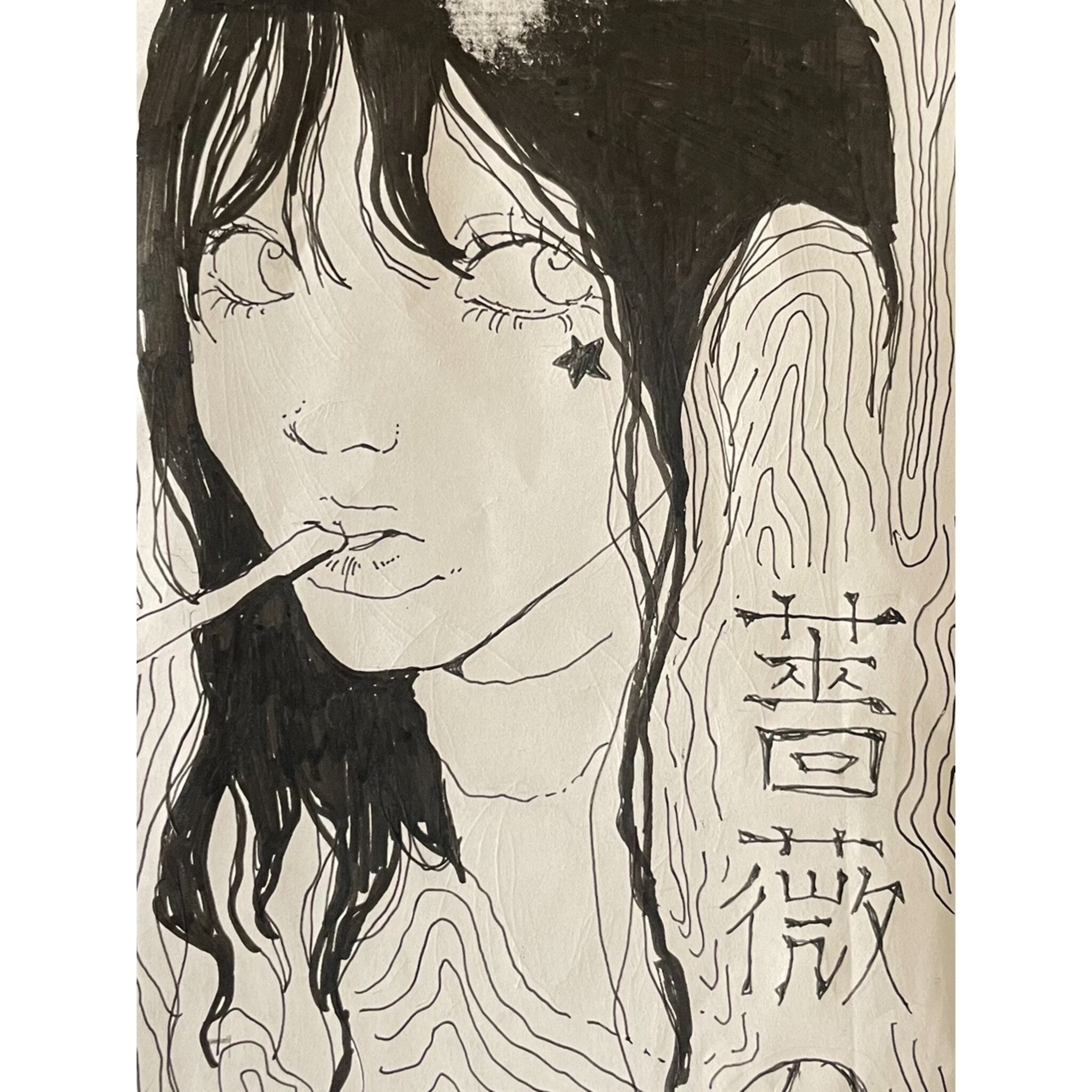 ドローイング原画 Original drawing peace Size: 125mm×90mm 世界で一つの原画 ※額装なしです ナカモトアイリ 負の感情を描いています 美しいものはいつも皮の下に