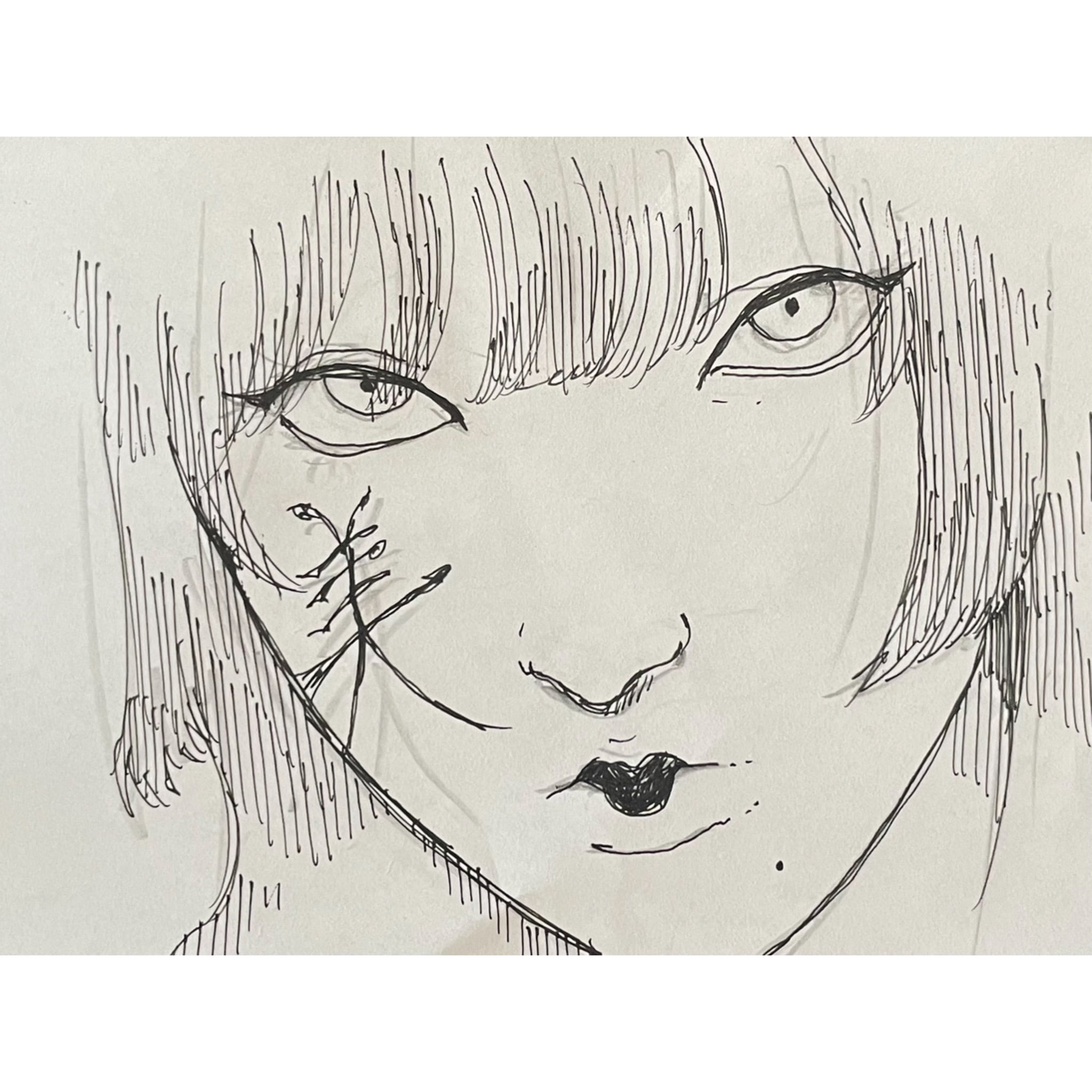 ドローイング原画 Original drawing peace Size: 125mm×90mm 世界で一つの原画 ※額装なしです ナカモトアイリ 負の感情を描いています 美しいものはいつも皮の下に