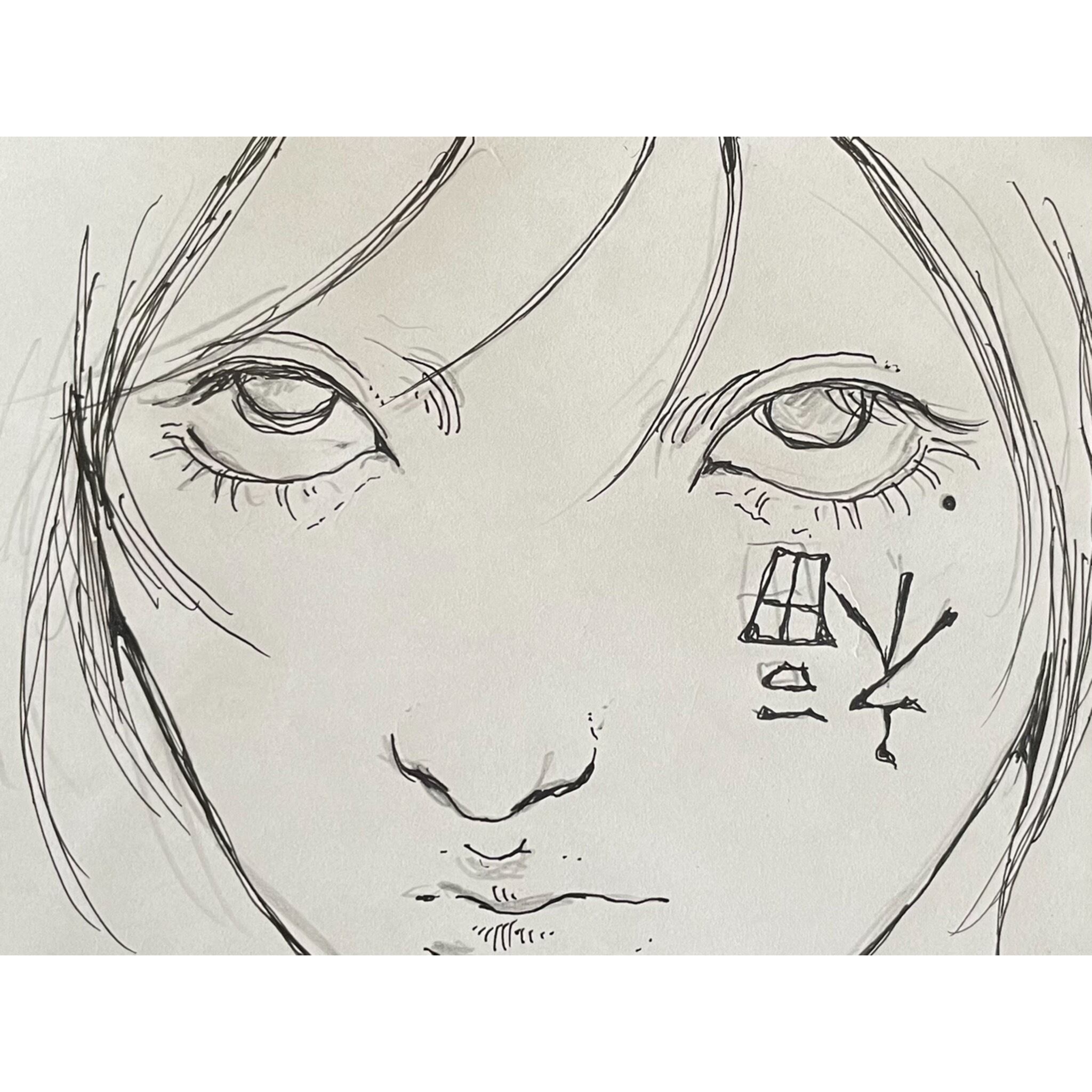 ドローイング原画 Original drawing peace Size: 125mm×90mm 世界で一つの原画 ※額装なしです ナカモトアイリ 負の感情を描いています 美しいものはいつも皮の下に
