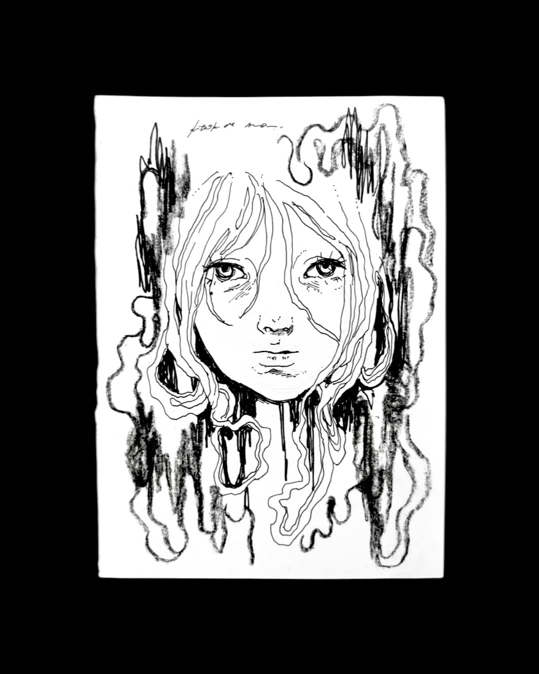 Drawing - Sinking into stillness 静けさに沈みゆく B5 150×109mm 世界で一つの原画 ※額装なしです ナカモトアイリ 負の感情を描いています 美しいものはいつも皮の下に
